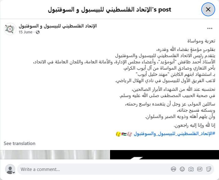 URL: https://www.facebook.com/Federation.Palestine/posts/pfbid0jSx4FzXmqNYvKF8wqVTbFxixb45Q9PSRXYwt2XoJbDZn7uT4rKZLUeG9tosPQJHhl