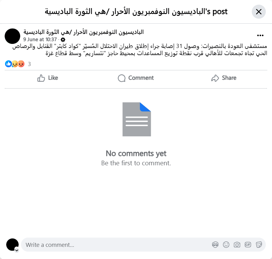 Al-Awda Hospital in Nuseirat: 31 wounded people were reported as a result of the Israeli occupation's "quadcopter" drones firing bombs and live bullets at crowds of residents near the aid distribution point near the Netzarim checkpoint in the central Gaza Strip.