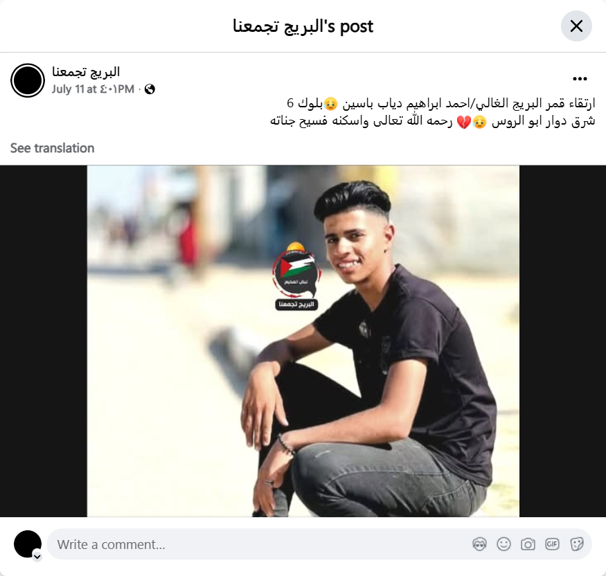 The passing of the dear Qamar Al-Bureij/Ahmed Ibrahim Diab, Basin Block 6