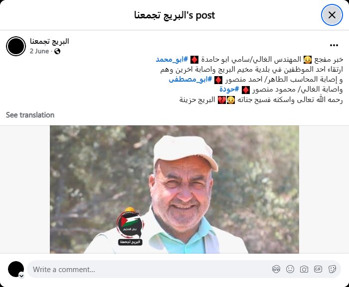 The death of one of the employees in the municipality of Al-Bureij camp and the injury of others, namely