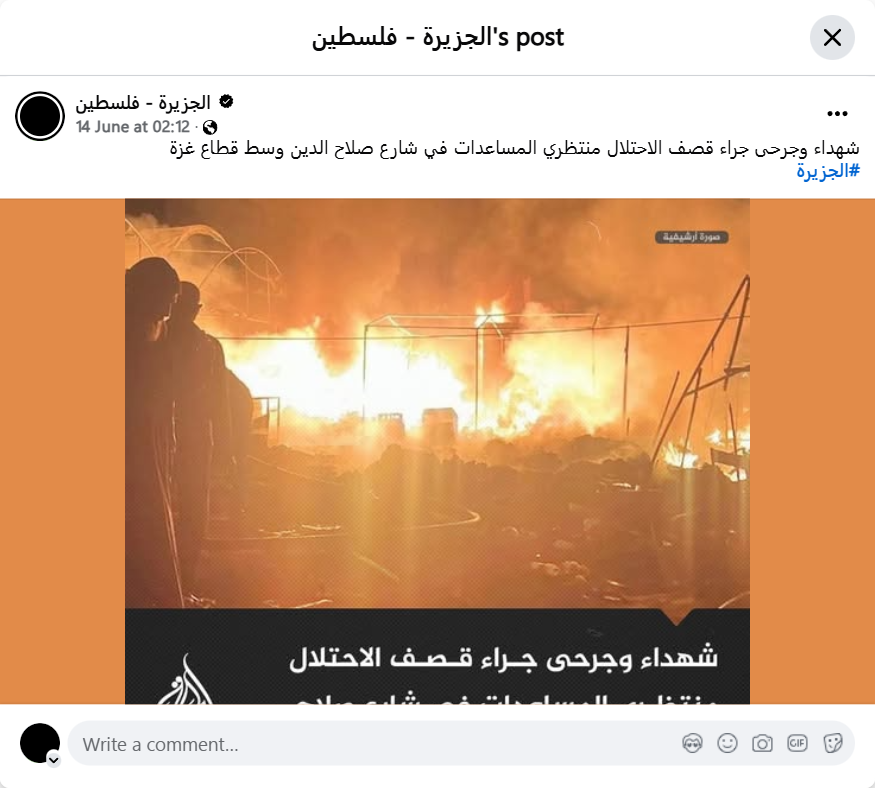 Martyrs and wounded as a result of the occupation's bombing of people waiting for aid on Salah al-Din Street in the central Gaza Strip.