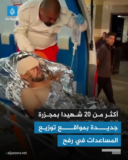 A new massacre: More than 20 Palestinians killed and over 200 others injured as the Israeli occupation army opened fire on civilians waiting for aid in Rafah, south of the #Gaza Strip.