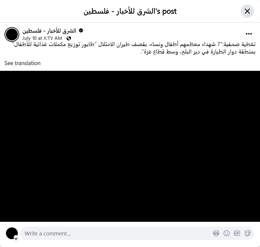 Archive URL: https://airwars.org/source/www-facebook-com-%d8%a7%d9%84%d8%b4%d8%b1%d9%82-%d9%84%d9%84%d8%a3%d8%ae%d8%a8%d8%a7%d8%b1-%d9%81%d9%84%d8%b3%d8%b7%d9%8a%d9%86-1166731691929783-2025-07-10-090000/