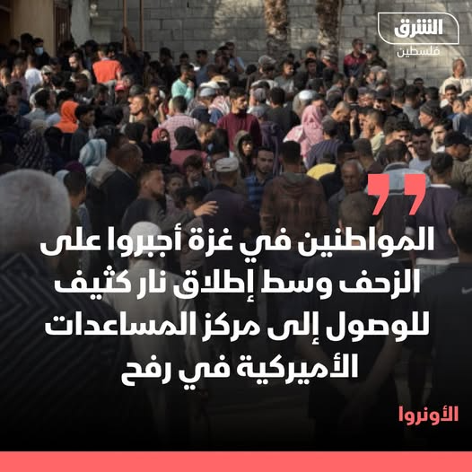 الأونروا:"المواطنين في غزة أجبروا على الزحف وسط إطلاق نار كثيف للوصول إلى مركز المساعدات الأميركية في رفح". #الشرق_فلسطين