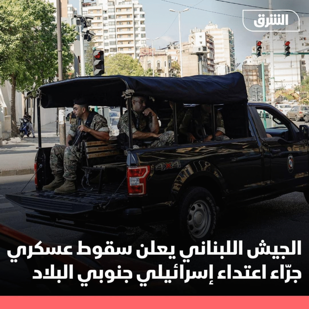 The Lebanese army announced the death of one soldier and the injury of another as a result of an Israeli attack while carrying out an evacuation and rescue mission with the participation of the Lebanese Red Cross in the town of Taybeh in Marjayoun, southern Lebanon. #Asharq #Asharq_News