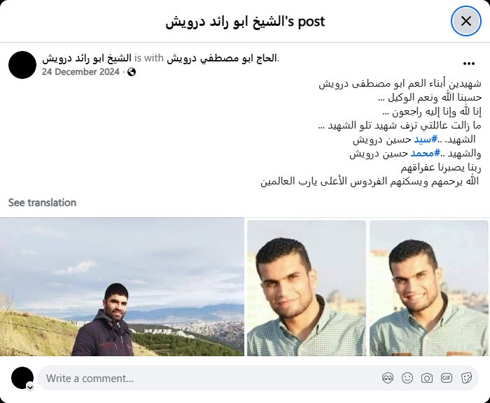 Two martyrs, cousins of Abu Mustafa Darwish.