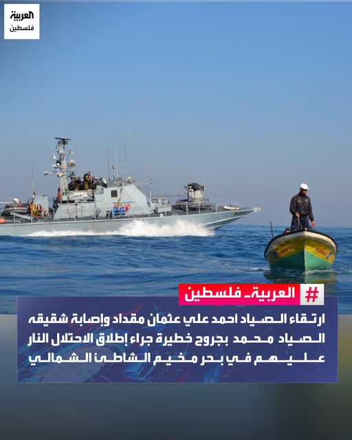 ارتقاء الصياد أحمد علي عثمان مقداد وإصابة شقيقه الصياد محمد بجروح خطيرة جراء إطلاق الاحتلال النار عليهم في بحر مخيم الشاطئ الشمالي
