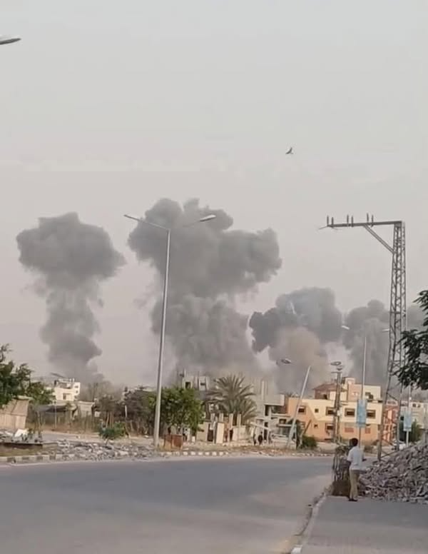 Breaking news now: A belt of fire surrounds the European Hospital in Khan Yunis with more than 14 missiles from Israeli warplanes. People were buried alive under the sand.