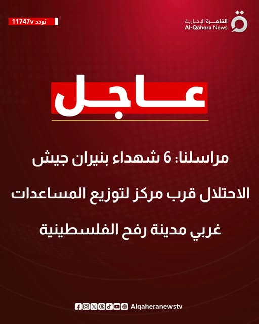 #Urgent | Our correspondent: 6 martyrs by Israeli army fire near an aid distribution center west of the Palestinian city of Rafah #Cairo_News #In_Solidarity_with_Palestine #Palestine