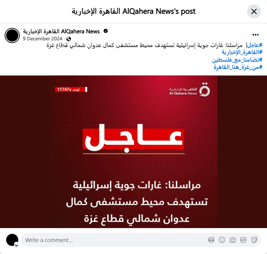 #Urgent | Our correspondent: Israeli air strikes target the vicinity of Kamal Adwan Hospital, north of the Gaza Strip. #Cairo_News #In_Solidarity_with_Palestine #From_Gaza_Here_Cairo
