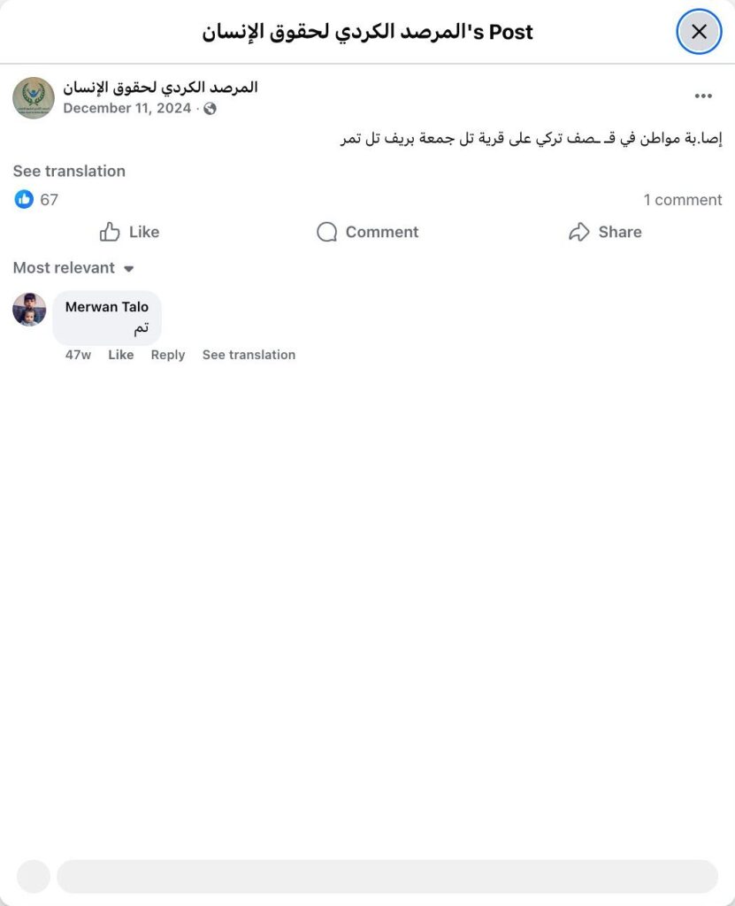 A civilian was injured in a Turkish bombing of the village of Tal Jumaa in the Tal Tamr countryside.