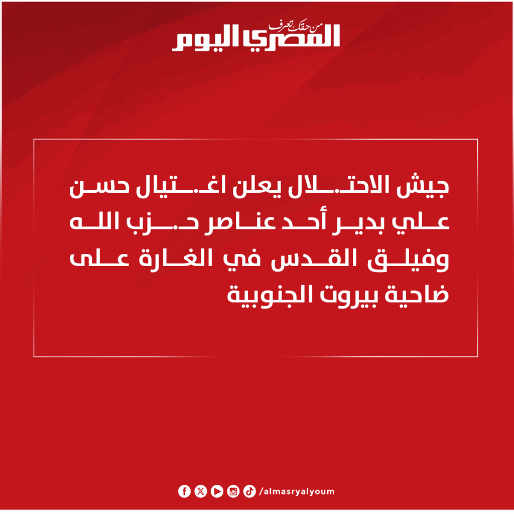 The occupation army announces the assassination of Hassan Ali Badir, a member of Hezbollah and the Quds Force, in the raid on the southern suburb of Beirut.