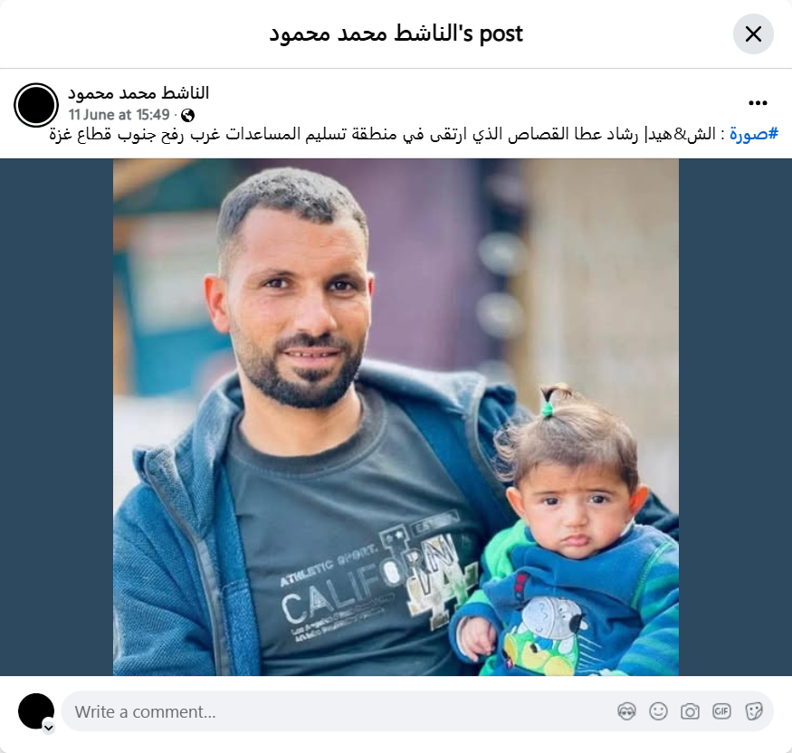 #Photo: Martyr Rashad Atta Al-Qassas, who was martyred in the aid delivery area west of Rafah, south of the Gaza Strip.