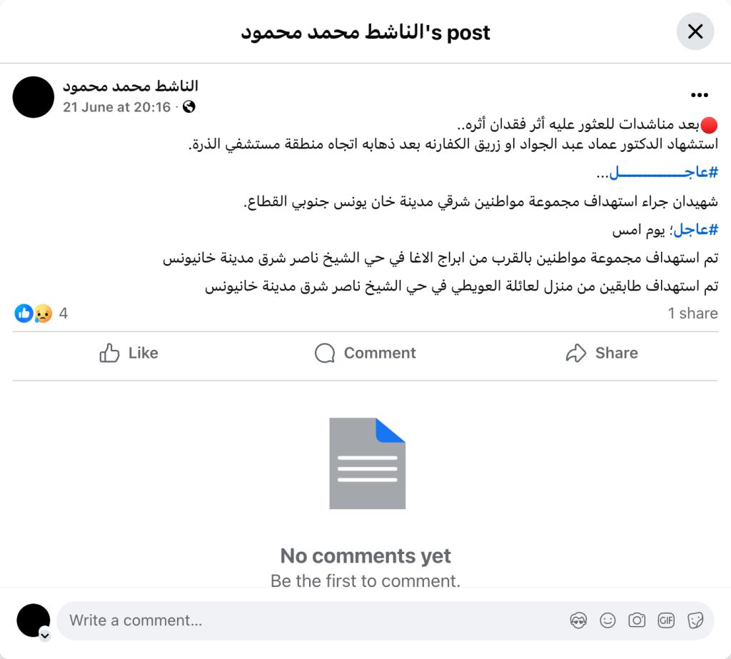 Dr. Imad Abdel Jawad, or Zureiq Al-Kafarneh, was martyred after going to the Al-Dhara Hospital area.