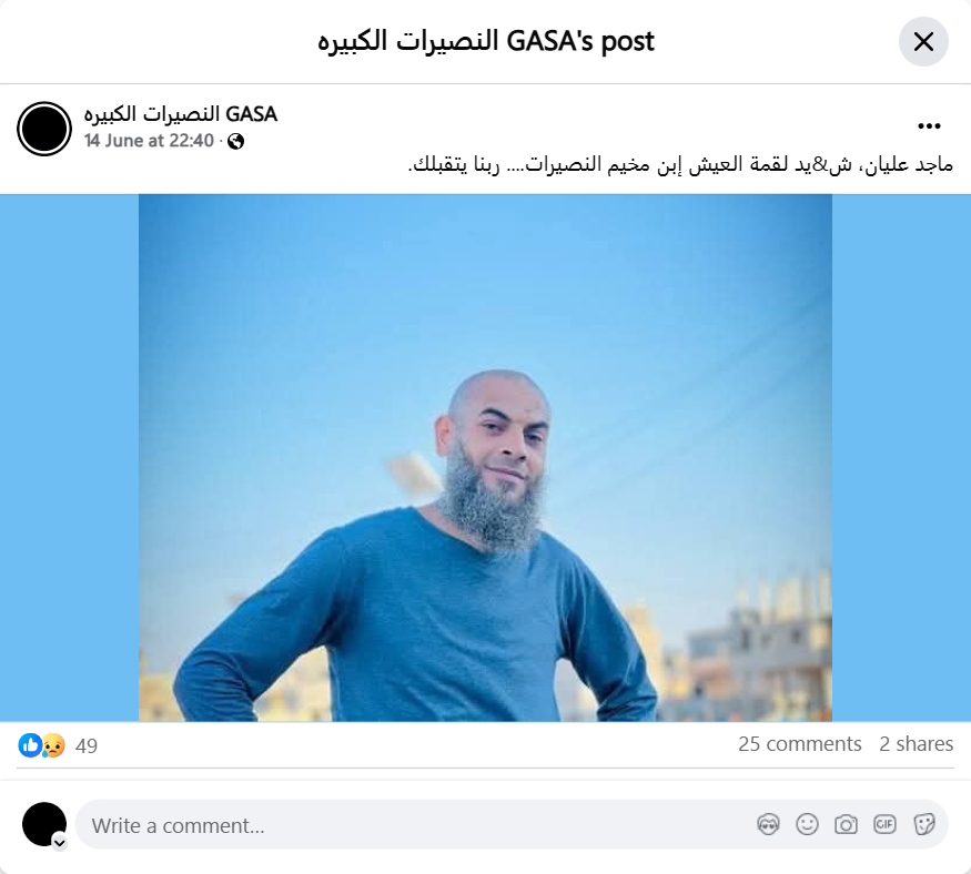 Majed Alian, a livelihood fighter from the Nuseirat camp... May God accept you. All reactions: 4949