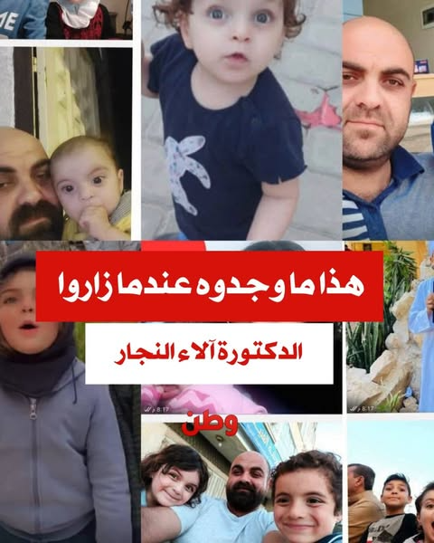 The first photos of the children of Dr. Alaa Al-Najjar before their martyrdom in Gaza.. 9 were killed at once Written by - Amr Al-Warwari and Ahmed Abu Draa In a humanitarian crime that was not the first nor will it be the last, the Israeli occupation forces bombed the home of Dr. Hamdi Al-Najjar and his wife Alaa Al-Najjar in the Khan Yunis area of the Gaza Strip. However, the crime did not spare the parents, but rather targeted their ten children, killing 9 of them and transferring the last to the hospital between life and death. Al-Watan obtained the last photos taken of the children of Dr. Alaa Al-Najjar and Dr. Hamdi Al-Najjar before the treacherous hand of the occupation forces extended to their children and bombed them with aircraft as punishment for their parents for their work treating children at Nasser Hospital. Al-Najjar family: Only a child remains fighting for death According to the mother of Dr. Hamdi Al-Najjar, who succeeded in leaving the Gaza Strip during the war, her son and his wife, Dr. Alaa Al-Najjar, were blessed with ten children, the eldest of whom was 12 years old. However, the occupation decided to exterminate the entire family by targeting the house with aircraft as soon as their father arrived. The mother continued, in statements to Al-Watan: “Who would accept what is happening? All the children are dead. Only Rami is left, between life and death in the hospital, and his injuries are serious. The children are gone, and with them the laughter and joy.” Mohamed, the brother of Dr. Hamdi Al-Najjar, said that the children arrived at the hospital a few hours after their mother arrived at her workplace at Nasser Hospital, but they arrived as charred remains. He pointed out that the bodies of 7 were extracted, and two of them are still under the rubble. The names of the children of Dr. Alaa Al-Najjar The accident resulted in the death of 9 of Dr. Alaa Al-Najjar’s children. The bodies of 7 of them were extracted: Eve Hamdi Al-Najjar (9 years old), Rival Hamdi Al-Najjar (5 years old), Sayedin Hamdi Al-Najjar (3 years old), Rakan Hamdi Al-Najjar (10 years old), Raslan Hamdi Al-Najjar (7 years old), Gebran Hamdi Al-Najjar (8 years old), and Luqman Hamdi Al-Najjar (2 years old). Civil Defense crews are also working to retrieve the bodies of Yahya Hamdi Al-Najjar (12 years old) and Sidar Hamdi Al-Najjar (less than one year old), while Dr. Hamdi Al-Najjar and his son Adam (9 years old) were transferred to the intensive care unit at Nasser Hospital.