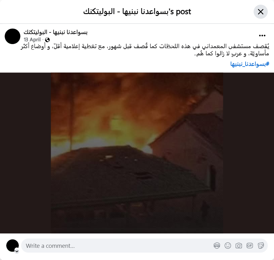 The Baptist Hospital is being bombed at this moment, just as it was bombed months ago, with less media coverage, more tragic conditions, and Arabs who are still the same.. #WithOurEarsWeBuildIt