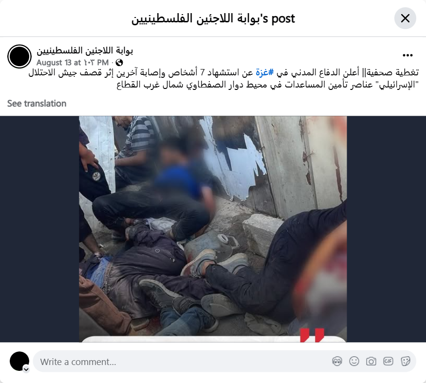 تغطية صحفية|| أعلن الدفاع المدني في #غزة عن استشهاد 7 أشخاص وإصابة آخرين إثر قصف جيش الاحتلال "الإسرائيلي" عناصر تأمين المساعدات في محيط دوار الصفطاوي شمال غرب القطاع