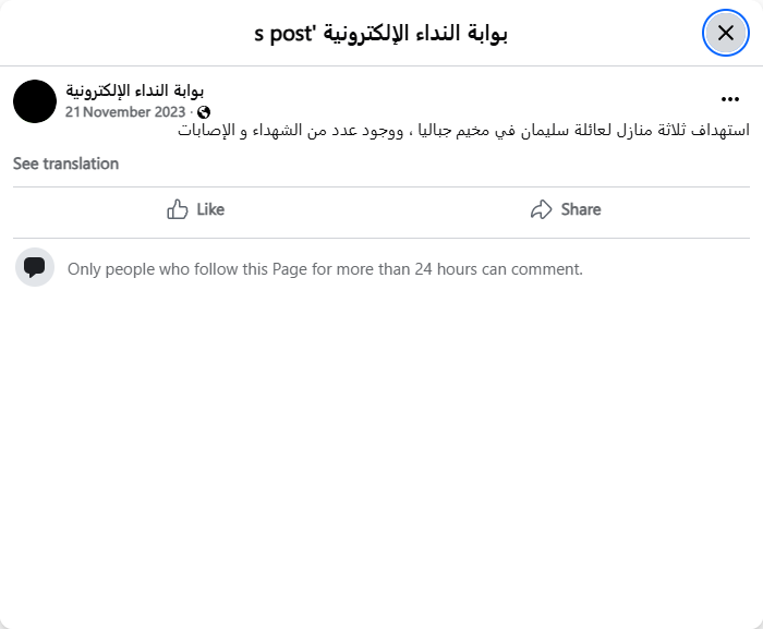 استهداف ثلاثة منازل لعائلة سليمان في مخيم جباليا ، ووجود عدد من الشهداء و الإصابات