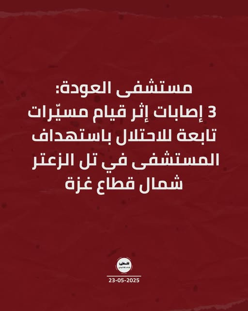 Al-Awda Hospital: 3 injured after Israeli drones targeted the hospital in Tel al-Zaatar, north of the Gaza Strip.
