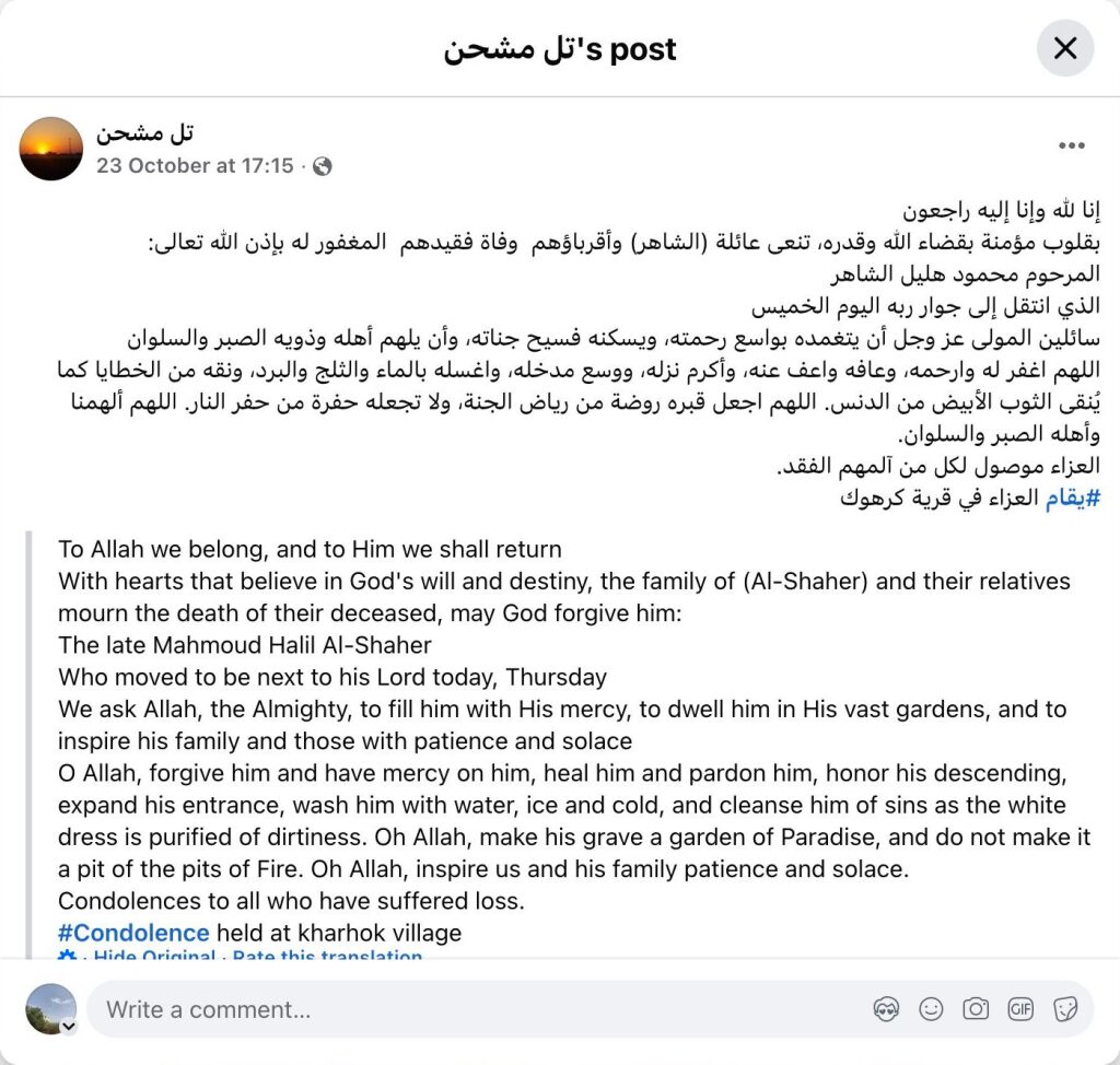 #يقام العزاء في قرية كرهوك
