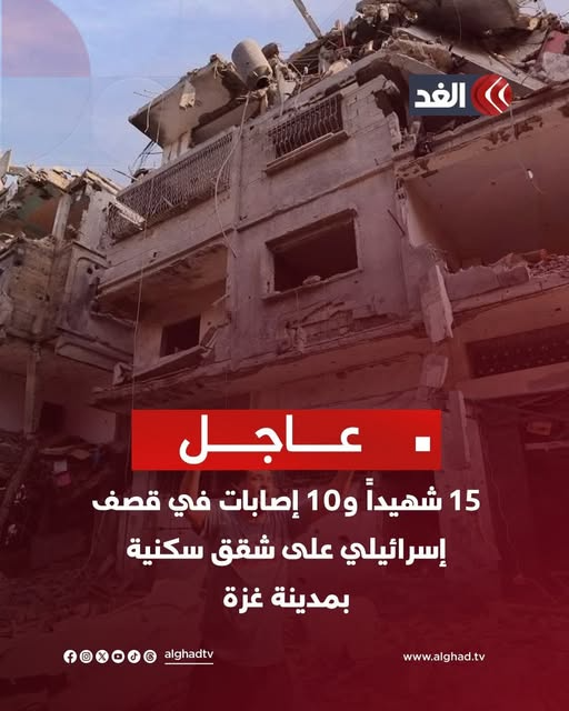 #Urgent | Civil Defense: 15 martyrs and 10 injured in Israeli targeting of three apartments in the Al-Karama area of Gaza City.