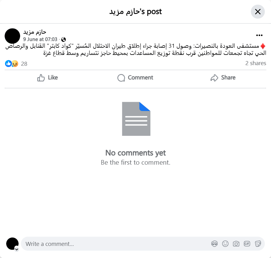 Al-Awda Hospital in Nuseirat: 31 wounded people were admitted after Israeli drones fired bombs and live bullets at crowds of civilians near the aid distribution point near the Netzarim checkpoint in the central Gaza Strip.