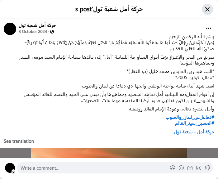 *Martyr Zain Al-Abidin Muhammad Khalil (Dhu Al-Fiqar)* *Born in Kounine 2005* He was martyred while performing his national and jihadist duty in defense of Lebanon and the South