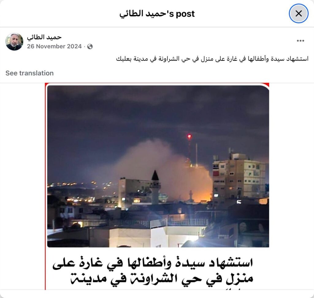 استشهاد سيدة وأطفالها في غارة على منزل في حي الشراونة في مدينة بعلبك
