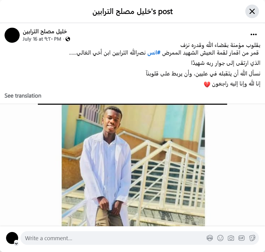 A moon of the moons of livelihood, the martyred nurse #Anas Nasrallah Al-Tarabin, my dear nephew...