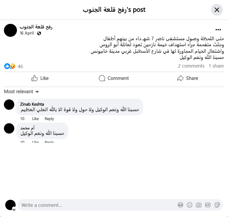 Archive URL: https://airwars.org/source/www-facebook-com-%d8%b1%d9%81%d8%ad-%d9%82%d9%84%d8%b9%d8%a9-%d8%a7%d9%84%d8%ac%d9%86%d9%88%d8%a8-pfbid031g8ymd2wdbcdlg3myz7rn88px4ufzy1frpoxpkfeqsiusmm3vnofmlf88jp7zuezl-2025-04-16-100000/