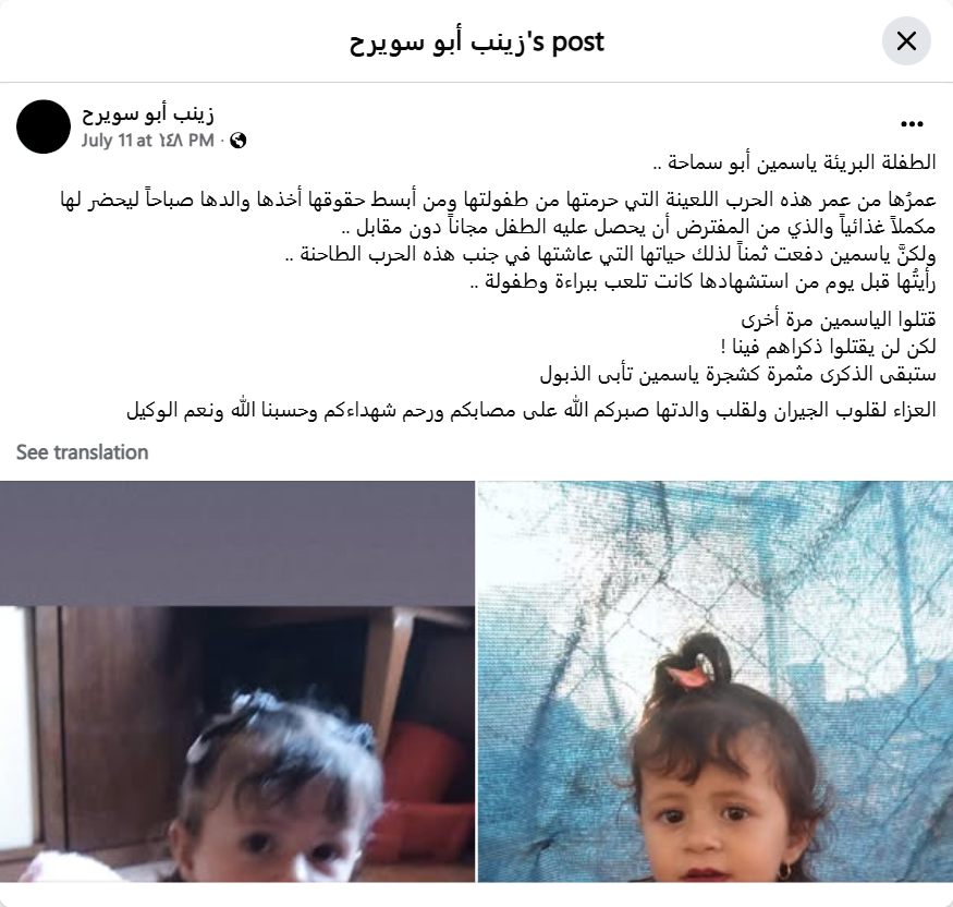 رأيتُها قبل يوم من استشهادها كانت تلعب ببراءة وطفولة ..