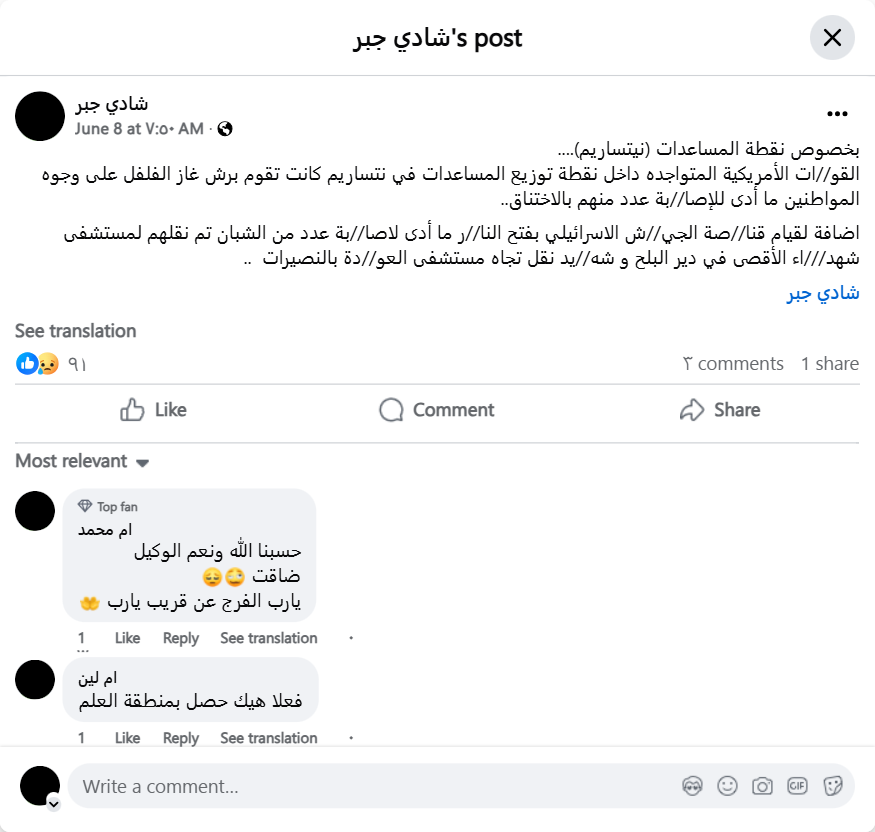 Regarding the aid point (Netzarim)... American forces present inside the aid distribution point in Netzarim were spraying pepper gas in the faces of citizens, which led to a number of them suffocating.