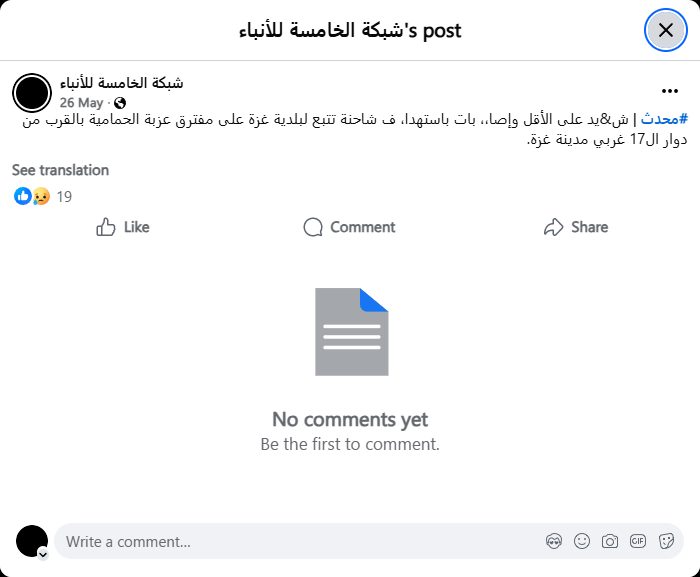 #Updated | At least one person was martyred and injured, and a truck belonging to the Gaza Municipality was targeted at the Ezbet Al-Hamamiya intersection, near Roundabout 17, west of Gaza City.