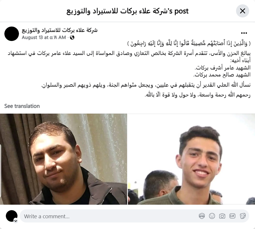 With deep sorrow and grief, the company family extends its sincere condolences and heartfelt sympathy to Mr. Alaa Amer Barakat on the martyrdom of his nephews: