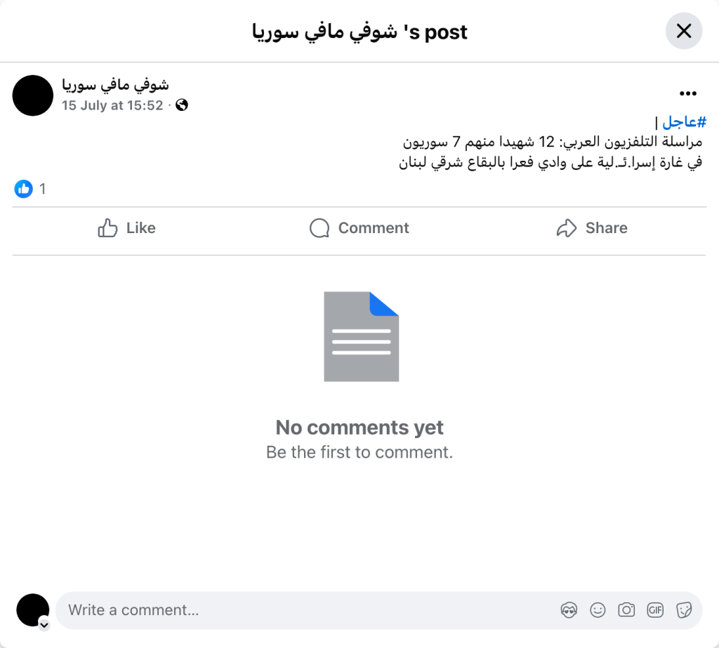 Archive URL: https://airwars.org/source/www-facebook-com-%d8%b4%d9%88%d9%81%d9%8a-%d9%85%d8%a7%d9%81%d9%8a-%d8%b3%d9%88%d8%b1%d9%8a%d8%a7-pfbid0u9sdd6ns6mmxn5fpuuus6ttqvybyblqdqwe27q8fcnlhnis9pfmtprvp9kh4suoul-2025-07-15-125200/