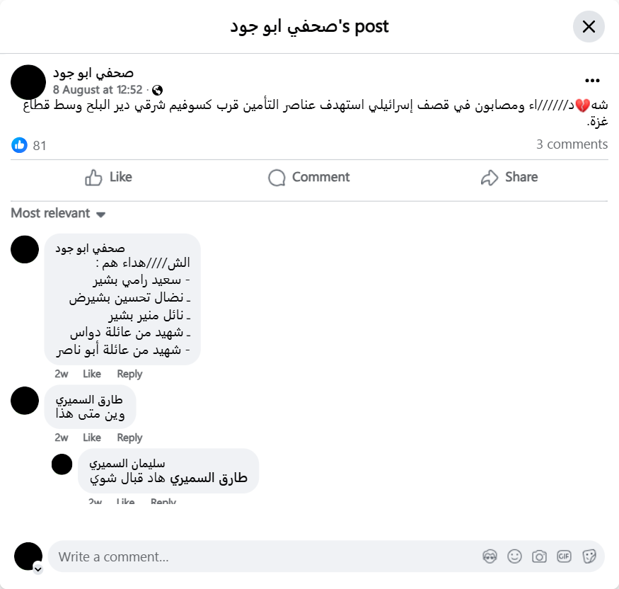 Martyrs and wounded in an Israeli bombardment targeting security personnel near Kissufim, east of Deir al-Balah, in the central Gaza Strip.