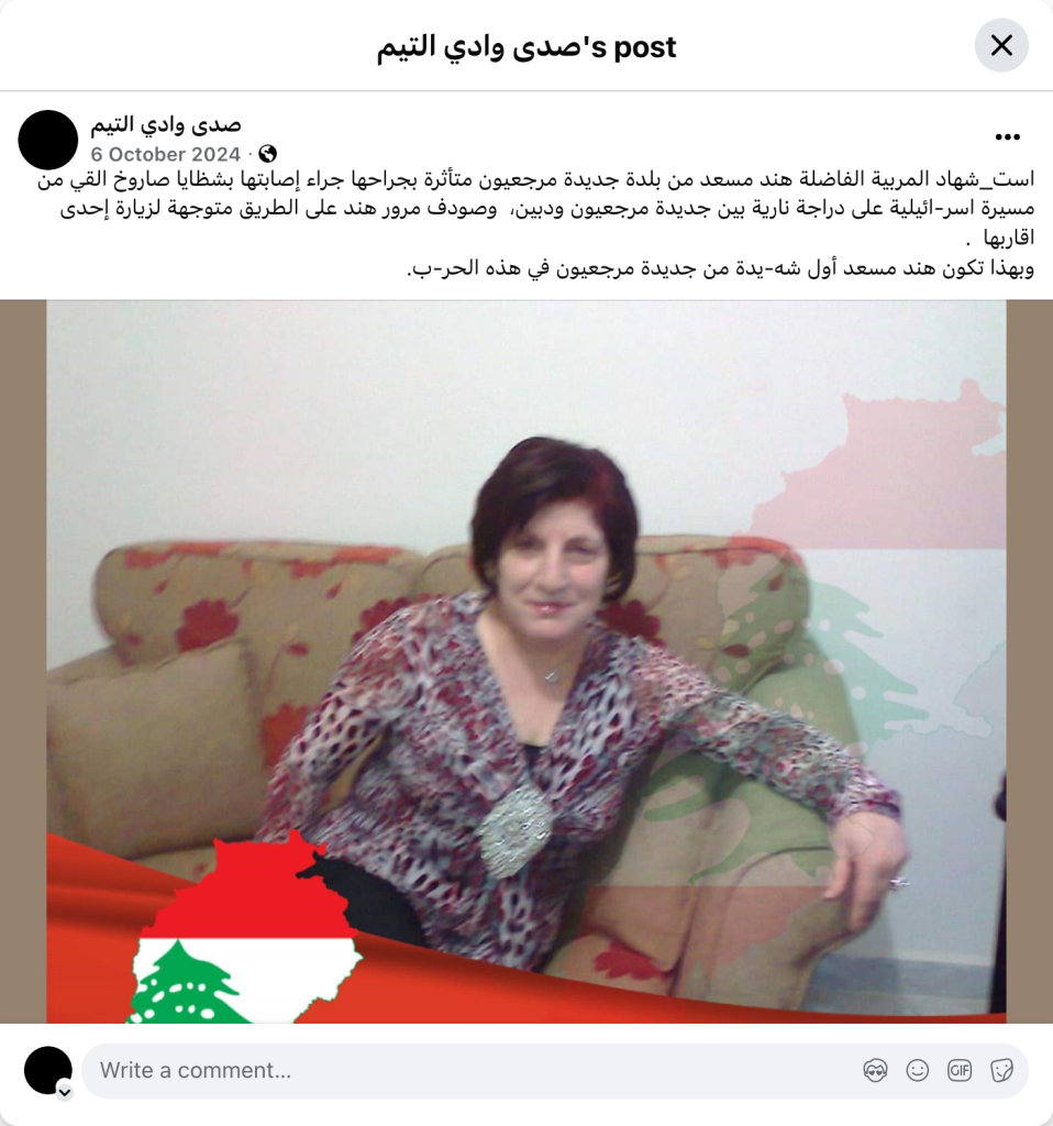 وبهذا تكون هند مسعد أول شه-يدة من جديدة مرجعيون في هذه الحر-ب.