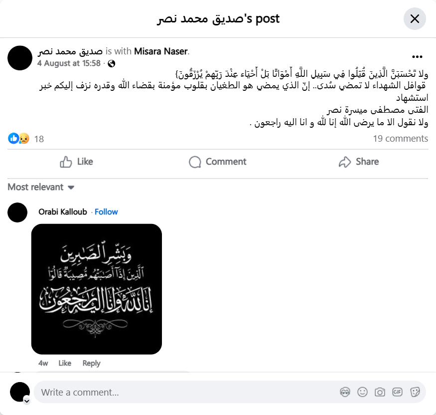 Archive URL: https://airwars.org/source/www-facebook-com-%d8%b5%d8%af%d9%8a%d9%82-%d9%85%d8%ad%d9%85%d8%af-%d9%86%d8%b5%d8%b1-pfbid026xqy8wbphhddzjvzouycbn7necuv3rnyxdergjnjemhccg7wpnv7xjzag5lzkdjtl-2025-08-04-1358/