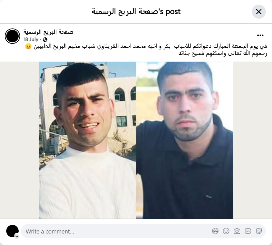 On this blessed Friday, please pray for our dear friends Bakr and his brother Mohammed Ahmed Al-Qarinawi, the kind young men of Al-Bureij camp. May God have mercy on them and grant them a place in His spacious gardens.