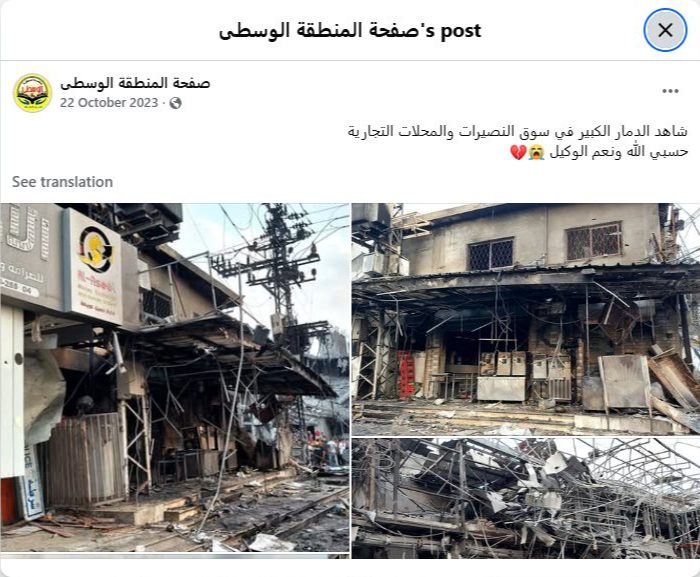 Witness the extensive destruction in the Nuseirat market and shops. May God suffice us, and He is the best disposer of affairs.