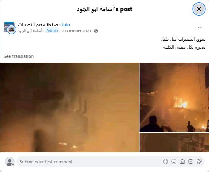 Archive URL: https://airwars.org/source/www-facebook-com-%d8%b5%d9%81%d8%ad%d8%a9-%d9%85%d8%ae%d9%8a%d9%85-%d8%a7%d9%84%d9%86%d8%b5%d9%8a%d8%b1%d8%a7%d8%aa-2023-10-21-090000/
