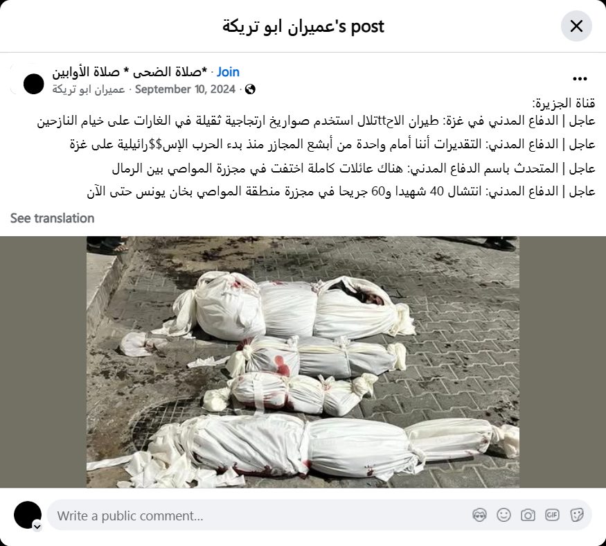 Breaking | Civil Defense spokesman: Entire families have disappeared in the Al-Mawasi massacre in the sand