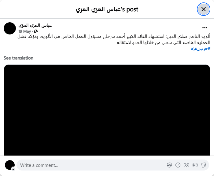 Archive URL: https://airwars.org/source/www-facebook-com-%d8%b9%d8%a8%d8%a7%d8%b3-%d8%a7%d9%84%d8%b9%d8%b2%d9%8a-%d8%a7%d9%84%d8%b9%d8%b2%d9%8a-pfbid051t8qk93lyyahujuehy9xmxtbfnkn6gl5snftffwytpr7pgjjatgeiqwkledljpql-2025-07-17-09193/