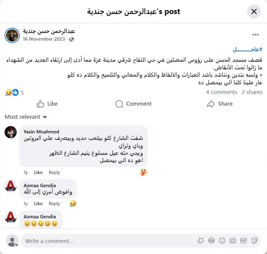 Al-Hassan Mosque was bombed while worshippers were inside in the Al-Tuffah neighborhood, east of Gaza City, resulting in numerous martyrs who remain trapped under the rubble.