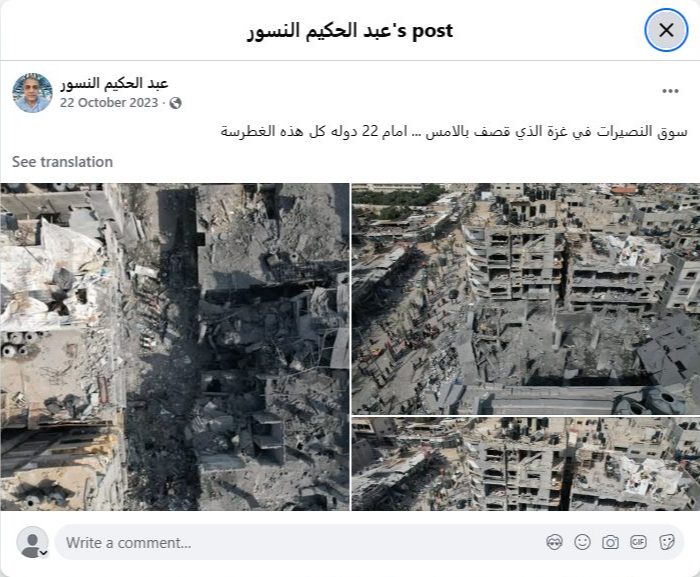 The Nuseirat market in Gaza, which was bombed yesterday... all this arrogance in front of 22 countries