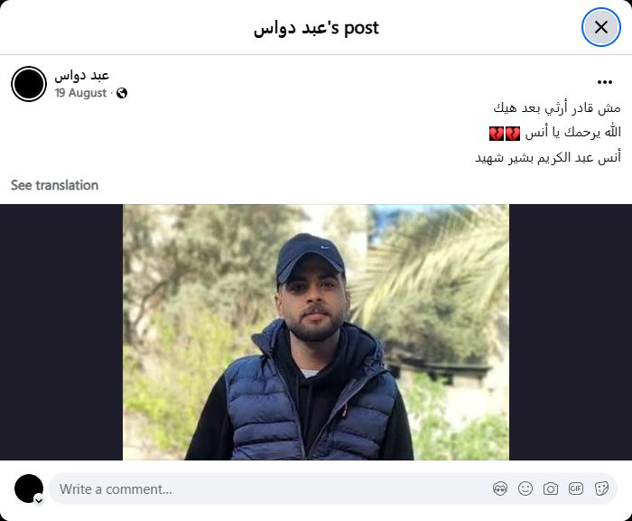 I can't mourn anymore. May God have mercy on you, Anas. Anas Abdul Karim Bashir is a martyr.