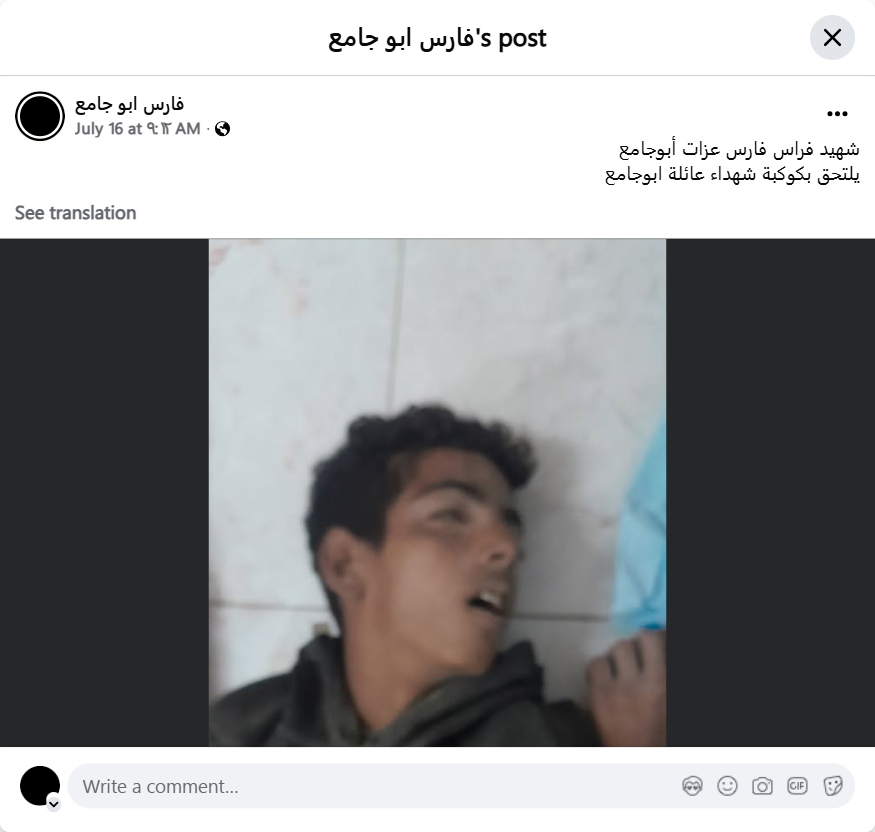 يلتحق بكوكبة شهداء عائلة ابوجامع