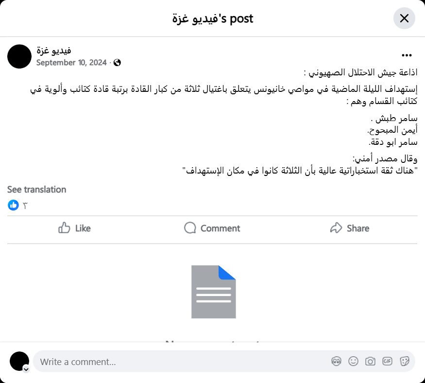 Archive URL: https://airwars.org/source/www-facebook-com-%d9%81%d9%8a%d8%af%d9%8a%d9%88-%d8%ba%d8%b2%d8%a9-pfbid02nylhur2gos8yotoxlfxgsaerhwnazhythwtcj6cyvojjh4ausampugcvvwukkt1nl-2024-09-10-090000/