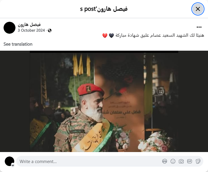 Congratulations to you, the happy martyr Issam Aliq, on your blessed martyrdom.
